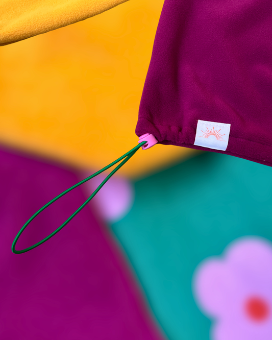 Ce processus d’upcycling permet de donner une seconde vie aux matières tout en créant des vêtements éthiques, colorés et plein de personnalité.