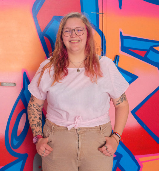 Reversible upcycled tops that can be worn as a wrap top or a boat neck . Their knotting system allows for easy adjustment to all body shapes! Reversible , they double the looks without doubling the wardrobe. Recycled materials or certified eco-responsible fabrics ( see the fabric charter ). Handcrafted in Liège. Dare to wear ethical fashion made in Belgium.